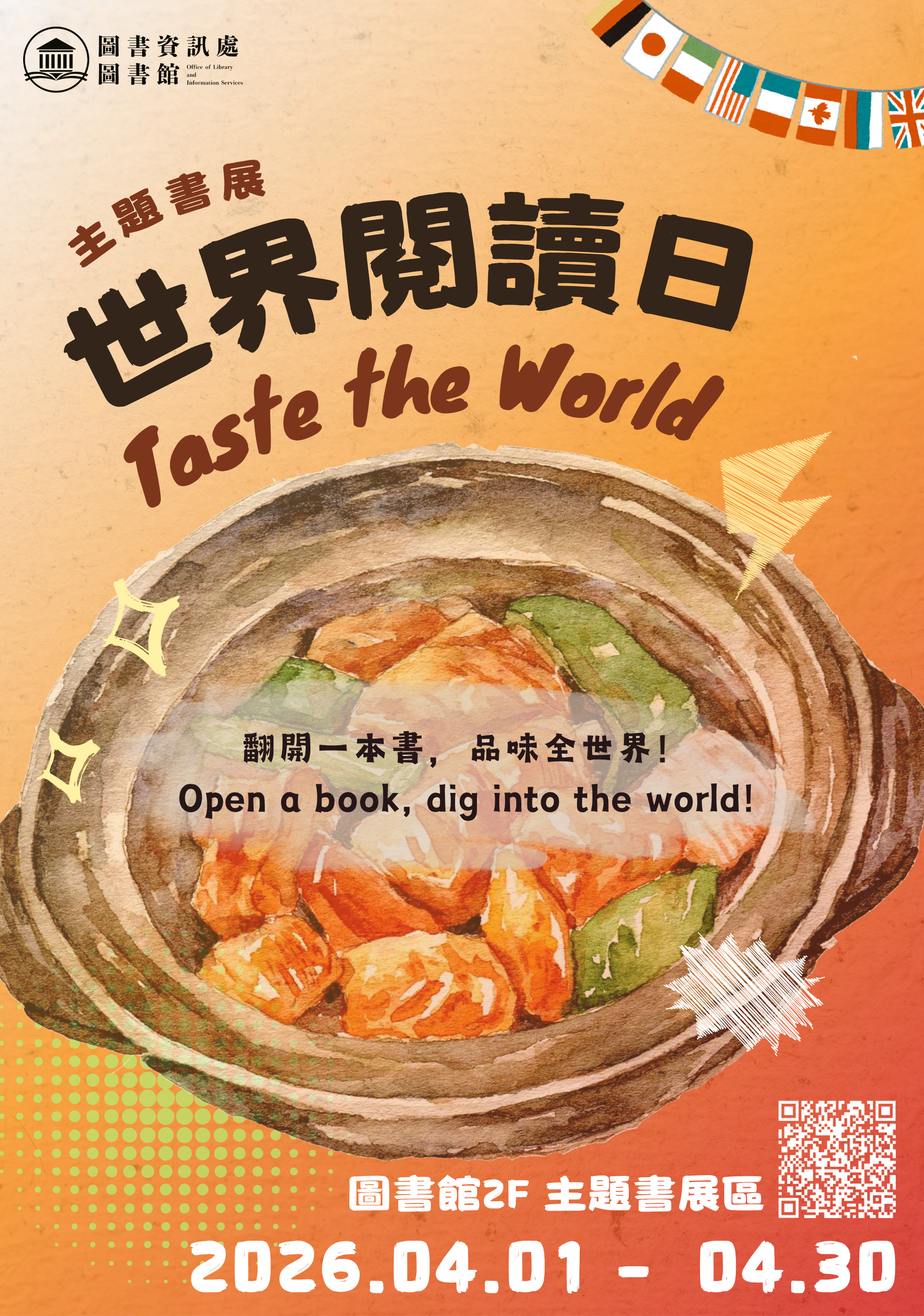 今年的世界閱讀日書展,圖書館將「閱讀」與「美食」擺上同一個餐桌,邀請你參與一場跨越國界的感官盛宴。